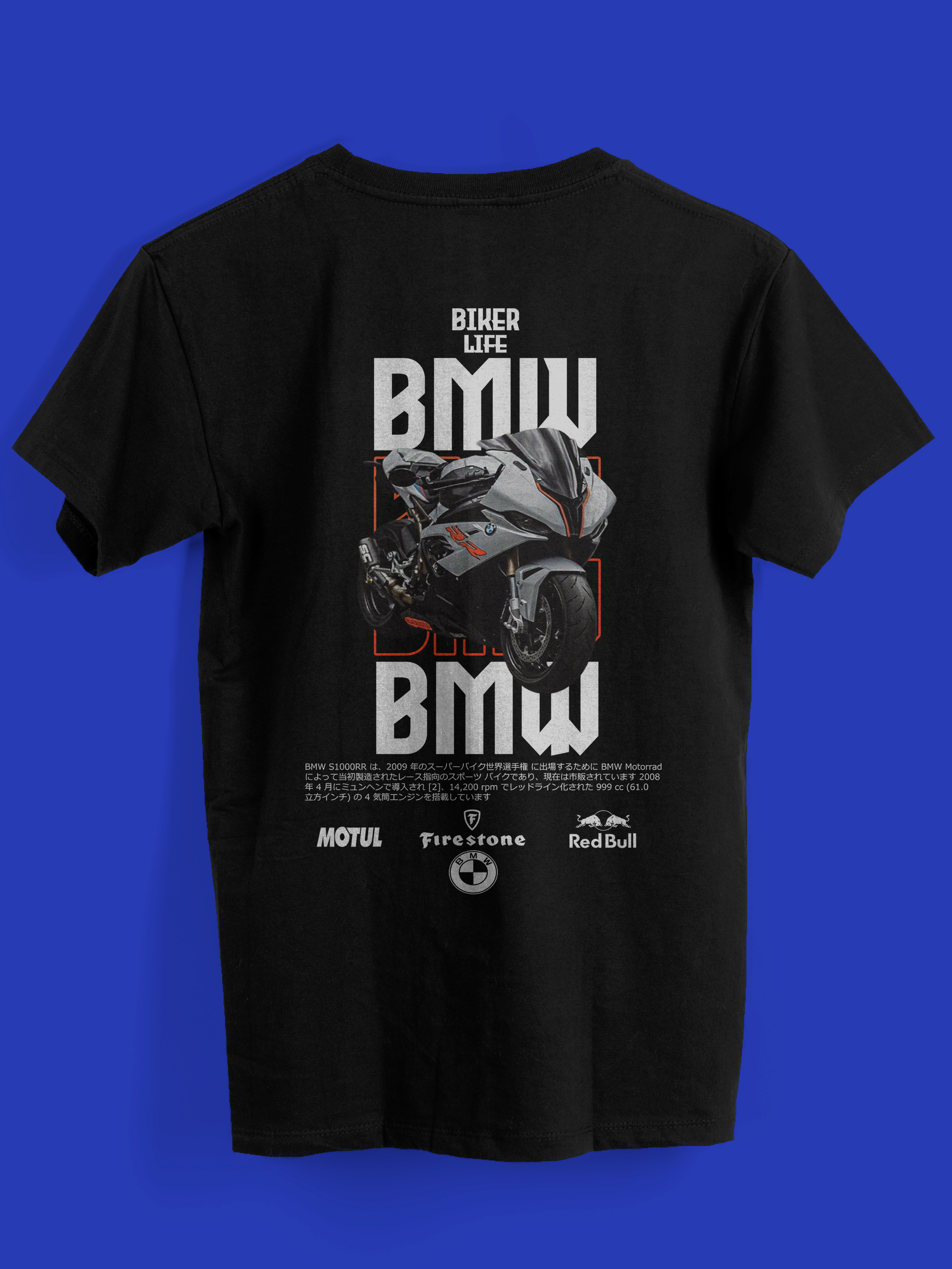 Muestra tu amor por la velocidad y el motociclismo con esta impresionante playera. Su diseño resalta la poderosa BMW S1000RR, una de las motos más icónicas del mundo deportivo. Con el texto "BIKER LIFE" en la parte superior y el nombre BMW.