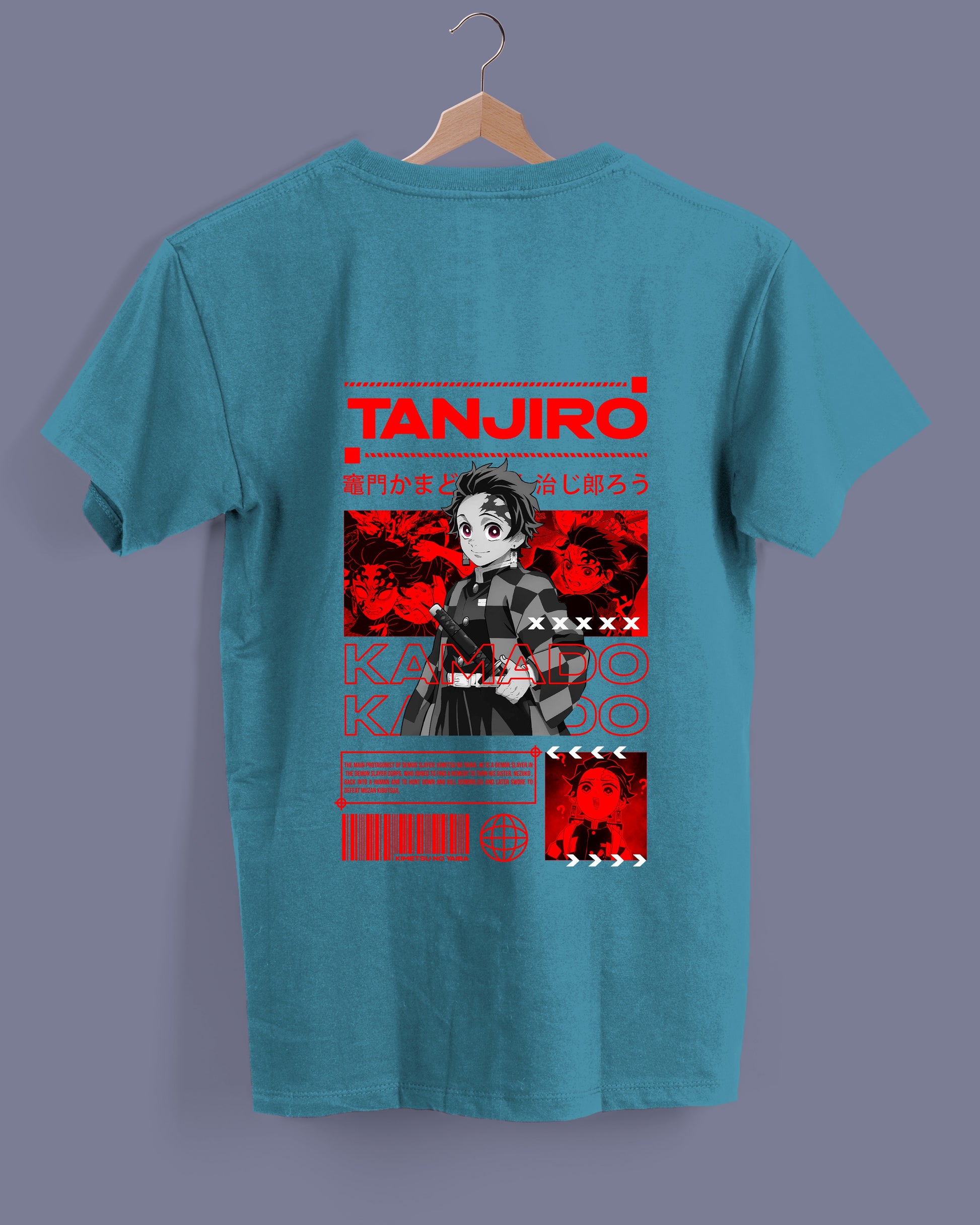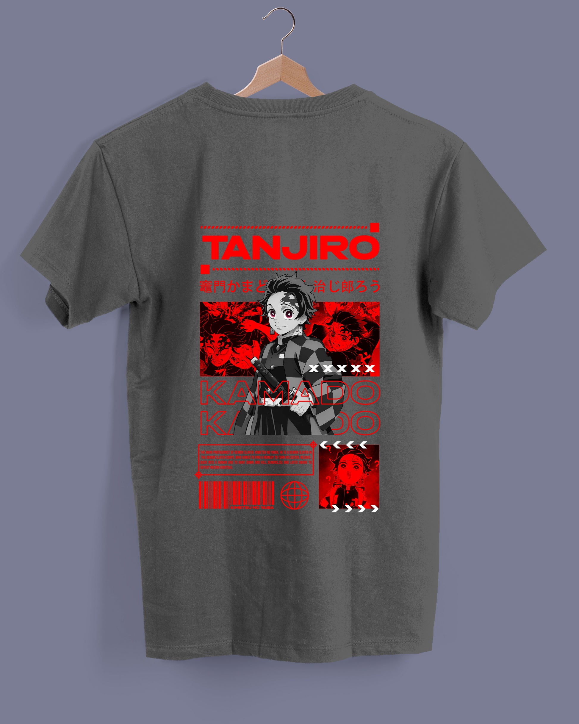 Una explosión visual que canaliza la fuerza y determinación de Tanjiro Kamado. Este diseño exclusivo combina arte gráfico japonés con actitud callejera: paneles rojos y negros muestran al protagonista en distintas expresiones, mientras el nombre TANJIRO domina la parte superior con energía brutal. El centro lo ocupa Tanjiro empuñando su espada, rodeado de elementos como estrellas, códigos y el texto “KAMADO KAMADO” en azul claro, fusionado con el fondo.